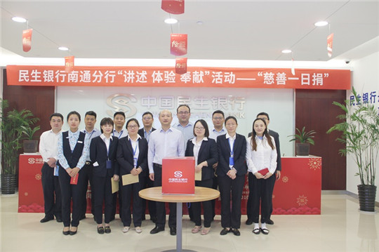 此次“慈善一日捐”活动,是民生银行南通分行今年“讲述、体验、奉献”活动中的重要组成部分。民生银行南通分行党委高度重视,班子成员带头捐赠,积极发挥表率作用。广大干部职工也纷纷慷慨解囊,拿出当日的工资主动奉献爱心,筹集善款帮助贫困村、弱势群体和困难群众,为脱贫攻坚汇聚善心力量。通过此次活动,民生银行南通分行干部职工踊跃奉献自己爱的力量,帮助特殊群体,更好地履行社会责任,将民生家园文化的公益爱心传递出去,在奉献爱心的同时,提升社会幸福感,共创美好和谐社会。