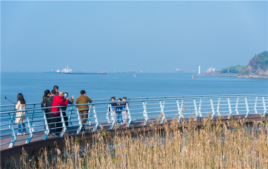 信步闲游,芳草茵茵;凭栏远眺,一碧万顷。近日的南通市五山地区滨江片区,成为百姓的新晋打卡地。从曾经散乱污的“生产岸线”到如今江清景美的“生态岸线”,从“求生存”到“求生态”,这里的沧桑巨变论证着“幸福生活是你们亲手建造奋斗出来的”,烙刻着“共抓大保护、不搞大开发”的坚定步伐。