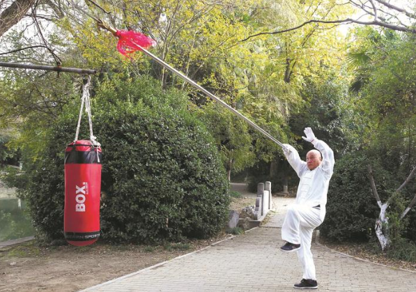 这几年,朱剑杰在虹桥公园内义务教太极拳,现有入室弟子10余人。他还曾被市武术协会聘为太极拳推手教练,从事公益教学。“中华武术博大精深,是优秀文化遗产之一。”朱剑杰说,练习太极大枪对身体素质各方面要求高,希望能早日找到接班人。