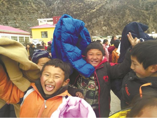 18日,周五,青海省玉树州囊谦县孜荣寄宿学校的家长们接孩子回家。和往常不一样的是,大家惊喜地发现自己的娃收到从江苏南通寄来的过冬衣物。