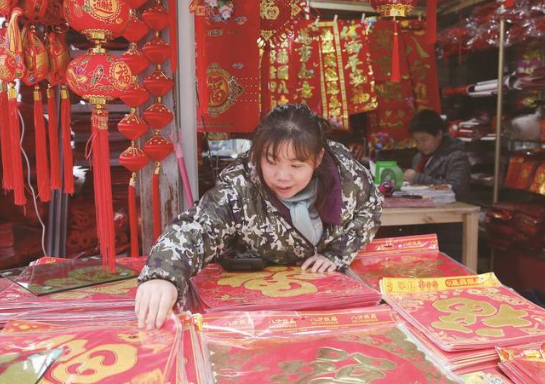 2021年元旦临近,市民们开始忙着选购春联、福字、中国结等饰品。昨天下午,市区中原市场一家店铺前,新年饰品被店主摆在显著位置。 记者 尤炼摄