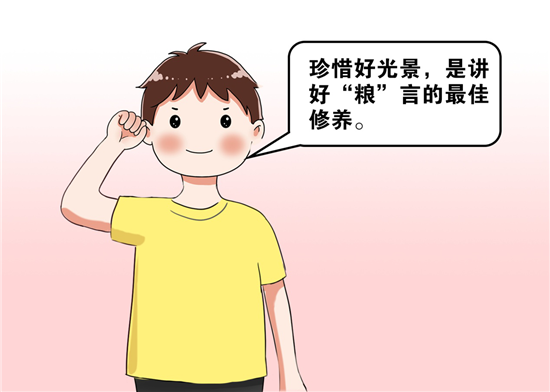 珍惜好光景,是讲好“粮”言的最佳修养。“谁种地、补贴谁”的政策实施,保护了种粮农民的利益,以国之名,回应种粮人的辛勤付出,暖了“三农”的心,让“一粥一饭,当思来之不易”成为社会共识、成为时代共鸣。反食品浪费法草案正式提请十三届全国人大常委会第二十四次会议审议,以法之名义,将反食品浪费进行到底,让珍惜盘中餐成为习惯、成为行动。细节讲述真意、点滴折射真情,中国饭碗,在中华民族伟大复兴路上,越端越自信、越端越团结。