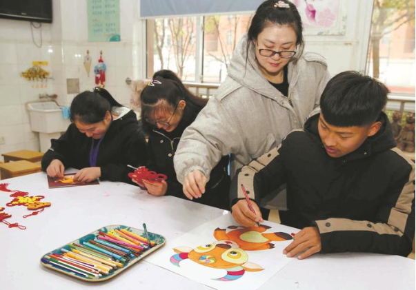 巧手翻飞,用钩针与线编织“春”题材的小型立体织物;凝神挥毫,用彩笔绘出憨态可掬的牛。昨天中午,南通特殊教育中心一楼手工教室内,一群聋生正凝神学习钩针编织技能、画牛,指导老师是聋人美术老师张焕和志愿者姚红。