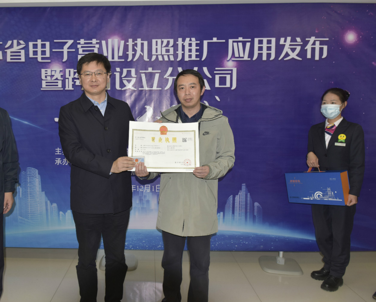 2020年12月1日上午,上海电气鼓风机厂有限公司行政部部长高昊在启东市行政审批局,领到分公司的营业执照,这也是江苏首张利用电子营业执照跨省办理的分公司营业执照。“没想到用电子营业执照就可以跨省办理分公司,真的太方便了!”高昊对于这种高效便捷的“网办”模式非常满意。