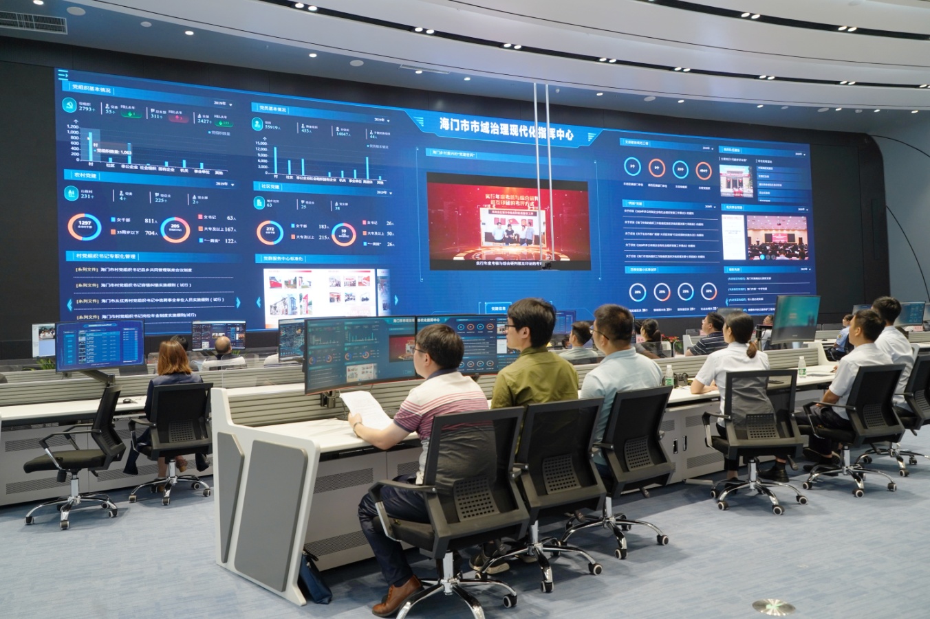 2020年6月份,一座集成信息化技术、汇聚大数据资源、实现全域化指挥、富有现代化气息的指挥中心建成投用。打造了海门最强的“城市大脑”,编织了一张覆盖城乡的“治理网”,城市治理的大小事实现了“一网统管”,也让群众办事“只进一扇门”“最多跑一地”,海门全区的社会治理驶上了快车道。海门区区域治理现代化中心负责人张磊介绍,通过指挥中心的建成运行,实现了“一口受理、一体派单、一台运行”,有效解决了以往资源分散、指挥不畅、协作不灵等问题,群众的安全感、获得感、幸福感不断提升,2020年海门公众安全感99.43%,走在全省前列。