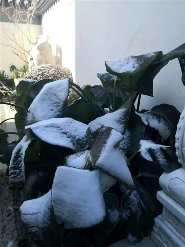 臻园的正大门前,两株从日本运来的高大罗汉松,以及院内淡竹、银杏、三角枫、紫叶李、芭蕉、海棠等功能型与观赏性兼具的树种,都在雪景下映衬出一番古朴韵味。笔者心想,若是春夏来此,那必然湖光潋滟,满园春色,暗香浮动,美不胜收。臻园是属于有文人士大夫情怀名流们的生活空间,亭台楼阁是园主人宴客待茶、听琴拍曲、读书写字之处。臻园却又是属于全体四安老镇人和每一位慕名而来的游览者,即便你不住在园林,假山、池水、曲桥、亭榭、长廊、家具、对联匾额、砖石窗雕及花草等园林元素,一直潜移默化地影响着人们的审美和品位。