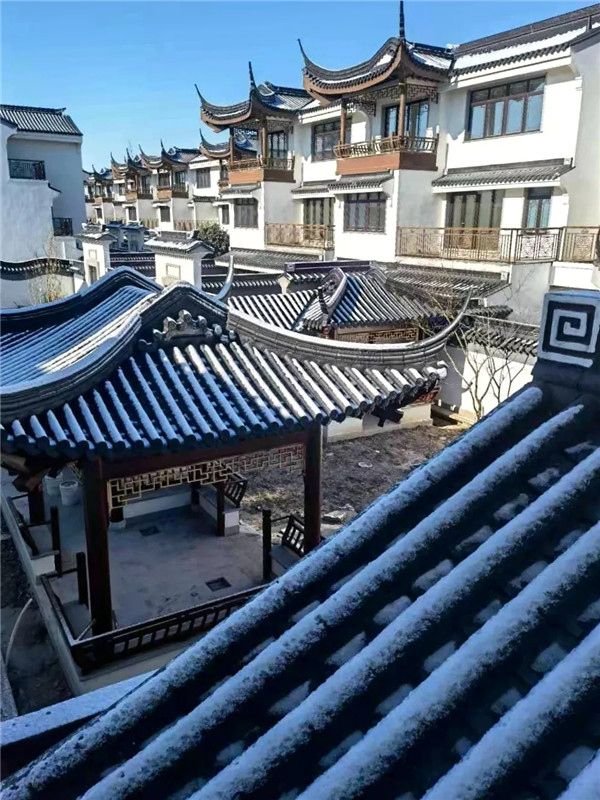 臻园在四安老镇中心位置的落户,用园林建筑为通州乡村振兴助力,无疑让这里的文脉走向兴盛。前不久一场小雪飘然而至,将老镇及臻园渲染成了一幅画卷,银装素裹,灵动美妙。在初雪清冷的空气中,笔者走进臻园实景园林示范区,残雪将山石、亭台、苍松渲染得更加“藏而微露”,整个园林显得错落有致,。登上一幢园林二楼凭栏远眺,赏中心业已冰封的湖景,思绪仿佛一下子凝固在历史的某个瞬间。