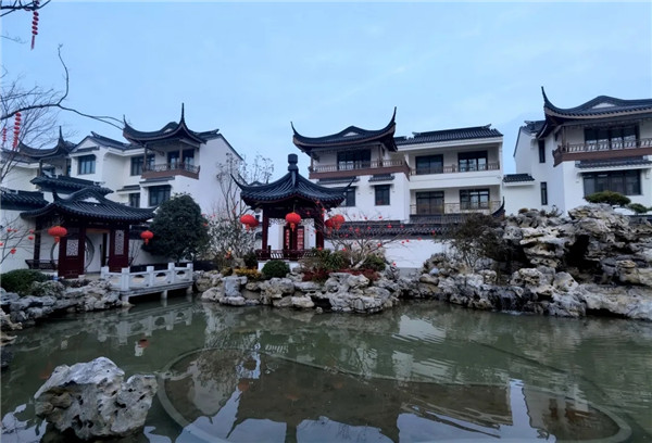 臻园,位于通州区兴仁镇酒店社区的原四安老镇中心,今年元旦后悄然对外开放。很多慕名而来的参观者惊叹不已:25幢苏式园林大宅组成的园圃小区内,江南风韵的门楼,脊角翘高的屋顶,曲折蜿蜒的长廊,叠石迭景的池泉,檐下精美的瓦当,芭蕉小竹的画意……处处尽显江南文韵。