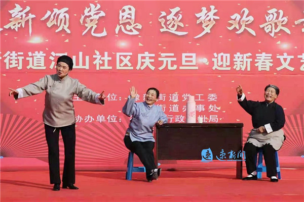 “穿新衣、贴春联,马上就要过新年;勤洗手、少聚集,疫情防控靠心齐……”1月29日,豫新街道江山社区表演队正在编排的快板,让整个屋子充满融融暖意。