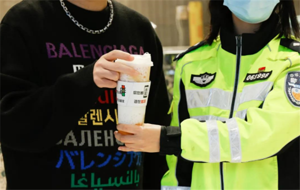 1月28日活动首日刚上线,来买奶茶的无论大朋友还是小朋友拿到这杯“交通安全奶茶”,都很开心。顾客蔡小姐惊喜地说:“这个创意真不错,边喝奶茶边接受交通安全教育,非常有意义!”,一旁的朋友也插嘴说:“这事儿挺酷,无论是教育小孩,还是家长自己,都会将交通安全铭记在心。”
