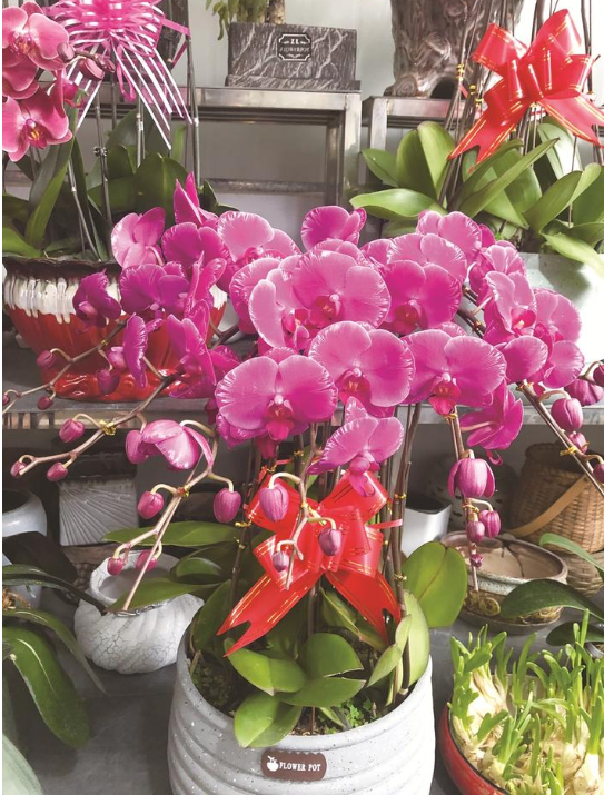 飞鹤花木大世界一花店内,各种造型的盆栽蝴蝶兰娇艳欲滴;亭亭玉立的茶花含苞待放,香味沁人心脾……形形色色的年宵花让人目不暇接。“我每年过年都会给家里购置几盆蝴蝶兰,想让家里有一些温馨高雅的感觉,增加点节日气氛。蝴蝶兰花期长,只要时不时喷点水就好,打理起来很方便。”前来购买蝴蝶兰的市民顾女士说。近年来,除了企业开业、乔迁之喜之外,随着消费升级和人们生活水平的日渐提高,家庭花卉消费人群正在逐年增多。“马上要过年了,想买些红色的花放在家里,希望家里和和美美的。”顾客张女士笑着说。