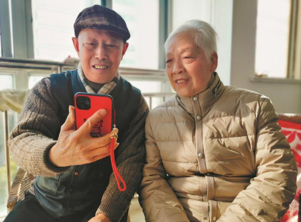 有别于头一次在机构过年的徐女士父母,清华大学铸造专业的同窗夫妇朱炳诚和彭小莹老人已在阳光老年公寓生活了十年,今年将是他们在养老机构度过的第十个春节。