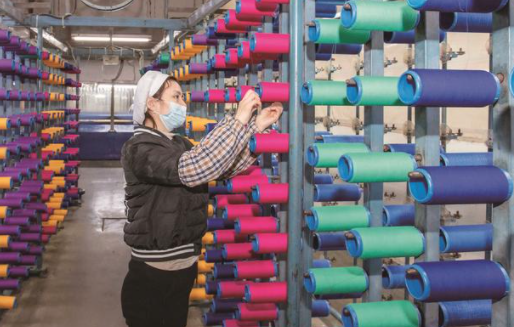 18日,在海安市立发街道的江苏联发纺织股份有限公司内,工人在工作岗位上操作。人勤春来早,企业开始紧张而忙碌的节后生产,力争实现新春开门红。 向中林摄