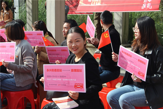 为激发老党员和流动党员参与理论学习的热情,崇川区推出“理论巴士”宣讲品牌,将中央、省市委的重要精神传递出去,从“小切口”入手,坚持基层理论宣讲接地气有人气的原则,定期结合最新时政和民生热点专题推出“菜单”,供广大党员群众“点菜”。并结合微信公众号、抖音直播等多种新媒体进行直播预告,通过双向互动交流的方式进一步“吸粉圈粉”。两区合并后,永兴街道的“理论巴士”开到了崇川经济开发区,跨河携手让两区融合更加紧密。为更好地将十九届五中全会精神传进千家万户,崇川经济开发区和永兴街道邀请各群体组成一支宣讲分队,从社区到企业、从书吧到田间、从园区到商场,“名师宣讲团”“名嘴宣讲团”,通过专家学者送学讲、党政领导带头讲、文化名人专题讲、百姓名嘴巡回讲,掀起了党员学习五中全会精神的热潮。