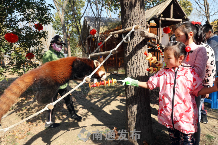 元宵节,又称上元节,是我国的传统节日之一。2月21日,南通森林野生动物园与崇川区幸福街道共同开展“我给动物过元宵 传统佳节共团圆”活动,通过为动物园的小熊猫、环尾狐猴等动物做“元宵串”、画手抄报等形式普及野生动物保护理念,迎接元宵节的到来。记者 徐培钦