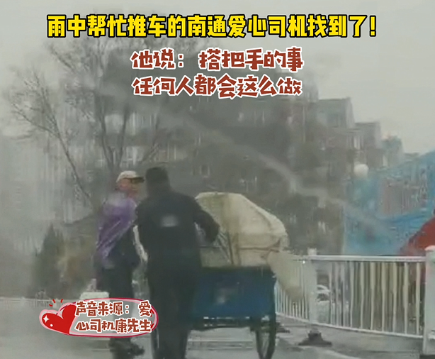 这两天,南通一位爱心司机在雨中帮忙推车的视频,在朋友圈里感动了无数网友。