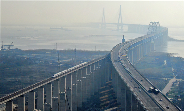 每天,“和谐号”从长江入海口的“钢铁彩虹”上疾驰而过,如巨龙般跨山越水,令人心驰神往。