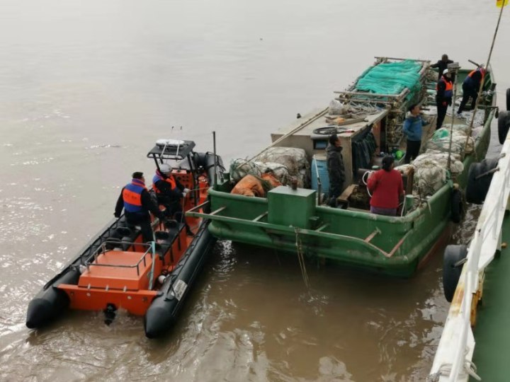 5日,一艘艘执法艇驰骋在长江如皋段,南通市水利局、如皋市农业农村局、如皋市水务局正在联合巡江,严厉打击非法捕捞、非法采砂等违法犯罪行为,跑好长江大保护“最后一棒”。