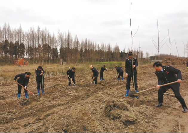 “两人一组,分头栽树。”8日,如东县苴镇街道东海社区废弃海堤上,来了一群身穿税务制服的植树造林志愿者,当手拿铁锹的如东县税务局二分局局长邓进峨布置完毕,10名志愿者有的持锹壅土,有的扶起树苗压实,一棵棵意杨拔地而起。