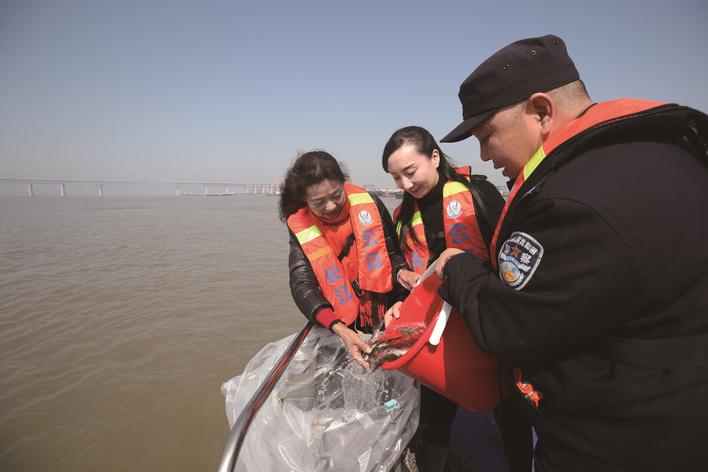 昨日,由团市委主办,共青团崇川区委、南通市港航事业发展中心、长航公安南通分局水上消防支队承办的“护绿护渔护生态,我为母亲河添彩”主题活动在崇川区天生港镇街道新闸村九圩港江堤举行,数十名志愿者种下一棵棵护江苗木并将十万余尾鲢鱼、青鱼、鲫鱼鱼苗放归长江。