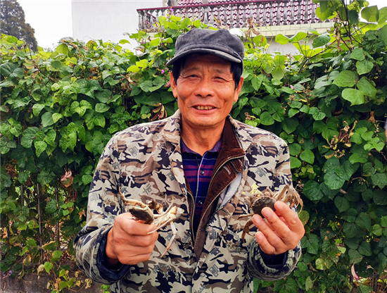 2018年,村党总支书记桑新华找到桑胜华:“政府搞扶贫,你想干点什么,我们来想办法。”桑胜华一合计:“我家门前有块池塘空着,就搞点蟹苗养养吧。”桑新华二话没说联系到村里的养蟹大户,免费资助了扣蟹苗,当即立下“军令状”:“一定干得漂漂亮亮!”三年下来,老桑家的养殖面积扩大到了6亩,养殖收入稳定在1.5万元左右,再加上粮食收入和低保金兜底,一家人一年收入三四万,成功越过了贫困线。如今,桑胜华家的生活一天比一天好。