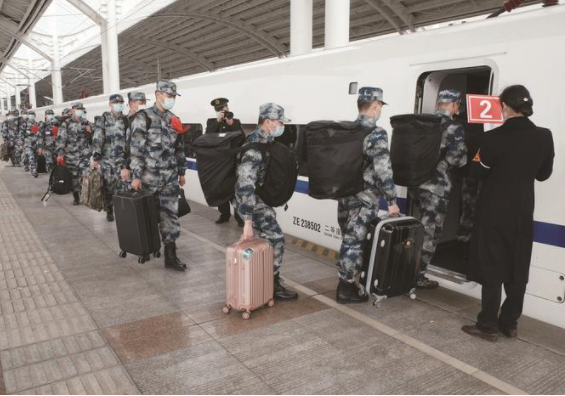 根据疫情常态化防控要求,各地从3月1日起陆续组织开展全封闭的役前教育,起运前都经过了不少于7天的集中隔离,并对每名新兵进行了核酸检测,从役前训练点直接送到火车站。为此,负责运输新兵的汽运集团和铁路部门也都严格做好了防疫工作。今年还首次启用空运新兵,主要保障西藏、新疆等铁路、公路运输距离较远、跨度较大的地区。我省的空运工作由省里统一安排,集中从南京起运。