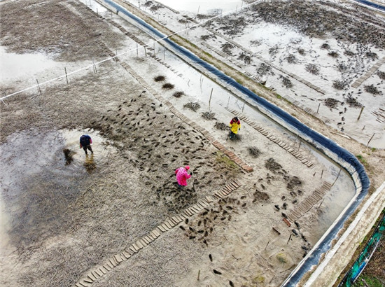 为保证水花生在蟹塘与沟河间的“一多一少”,镇上以“养蟹人为周边沟河保洁第一责任人”、“蟹塘周边沟河预留水花生繁育区域”、“鼓励蟹农移植沟河水花生”等诸多措施,成功实现了全镇重点扣蟹村总计2500多条沟河水面的清爽洁净,并满足了所有扣蟹池塘对水花生的足够需求,有力地促进了扣蟹富民产业,鼓起了乡亲口袋,节省了不菲的清理打捞费用。