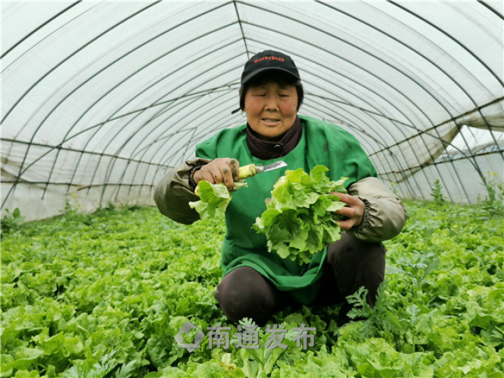 一棵棵嫩绿的生菜,铺展在搬东设施果蔬园区的一张张大棚内,搬经镇搬东社区76岁的江秀云一边采收,一边削去废根,将菜装入专用运输箱。“这100箱生菜今天下午全部运往上海,明天就能上上海人的餐桌。”江秀云说:“我家2亩地以每亩1100元的年租金,全部流转给了果蔬园,除了正月初一,一年四季天天来采收,每天拿70多元的工资,忙得真开心。”