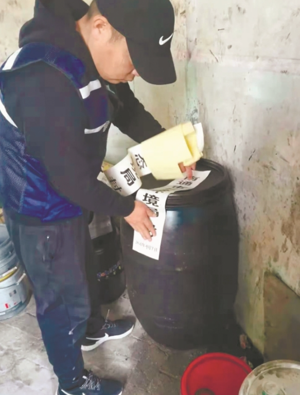 本网讯 9日,南通市通州生态环境局执法人员对二甲镇陀墩村一无证废油收购贮存点实施查封。