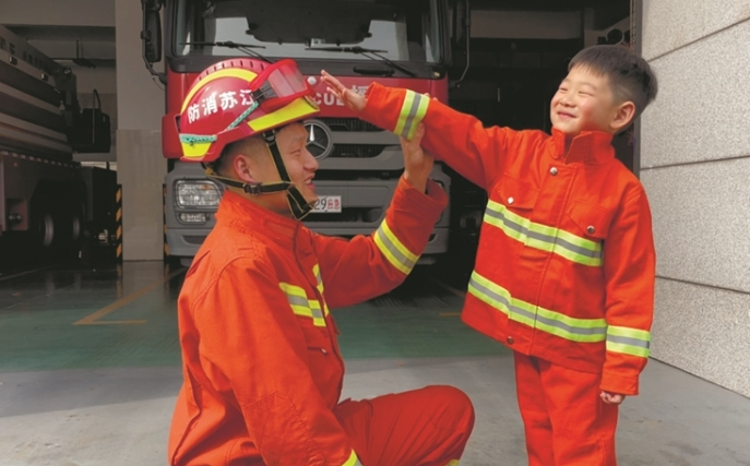 图图对消防知识的了解也让消防员们称赞。泡沫车、云梯车、消防艇……各种功能车图图如数家珍。一说起消防员图图就停不下来:“我知道,他们会救火、还会救人,还会救小猫小狗,会抓蛇、抓蜜蜂,遇到地震、洪水的时候,他们都会去。”