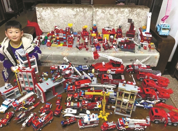 从此,图图对消防的热爱就再也控制不住了。动画片,他要看与消防相关的;学校组织的消防活动,他从不缺席;乐高、积木,就连画画儿都和消防有关……图图妈妈手机里也都是他和各种消防元素的合影。