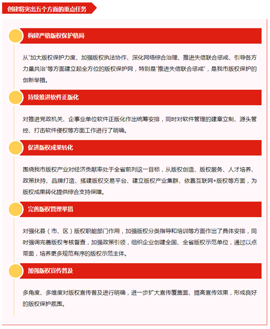 为推动创建工作,南通市专门出台了《南通市创建全国版权示范城市实施方案》,描绘了全国版权示范城市的“创建蓝图”和行动方案。