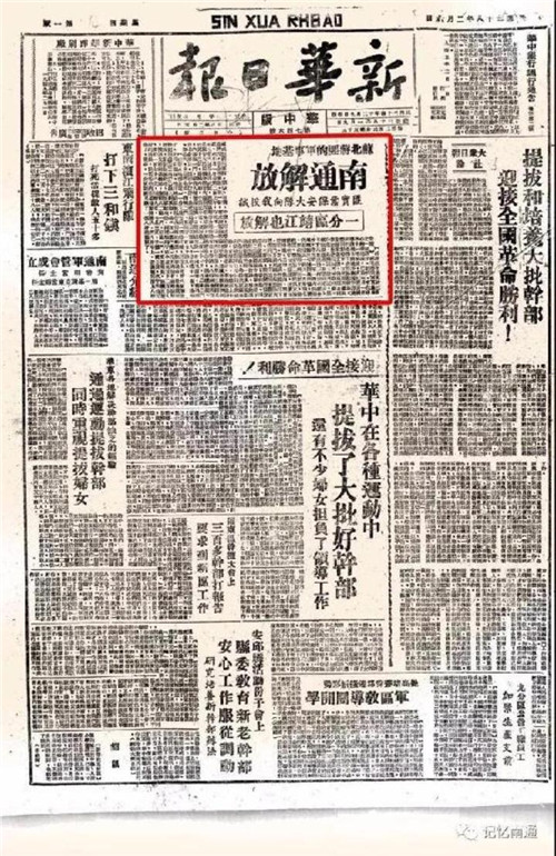 如东县掘港镇这一天获得解放。这是南通地区最早解放的县城。