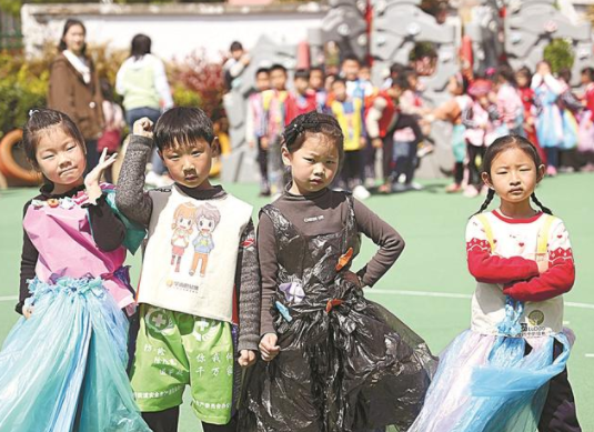 昨天,崇川区陈桥街道五里树社区党总支联合陈桥街道民政办组织辖区网格员、邻里志愿者在陈桥中心幼儿园开展“环保时装秀”主题活动。孩子们身着由废纸箱、塑料布、无纺布袋等材料制成的环保主题时装,倡导绿色生活,迎接“世界地球日”的到来。 记者徐培钦