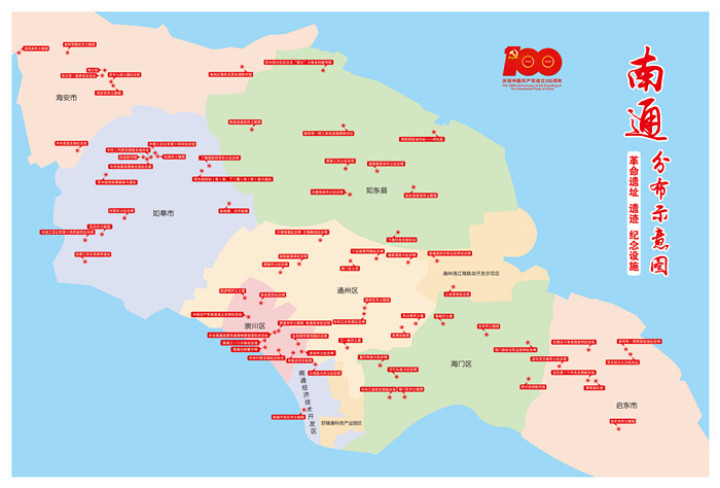 据悉,这份“红色地图”是南通市委党史办庆祝中国共产党成立100周年的献礼之作,通过服务全市党史学习教育,发扬好红色传统,传承好红色基因,激励全市广大党员干部不忘初心、牢记使命,勇当全省“争当表率、争做示范、走在前列”排头兵,书写好“强富美高”新南通建设现代化新篇章。