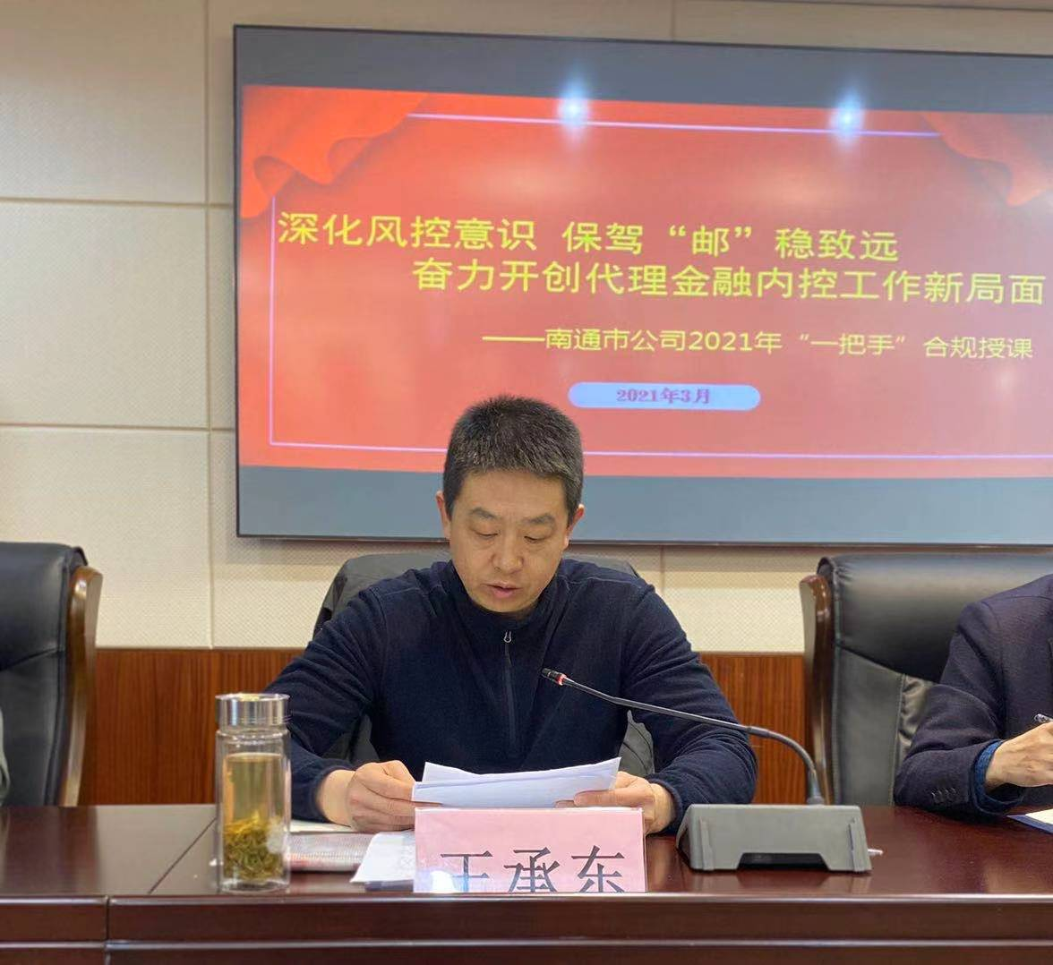 为进一步强化金融从业合规意识,提高风险防控能力,持续打好防范化解重大金融风险攻坚战,南通市邮银组织辖内各县公司、一级支行领导班子、部室负责人、支行网点负责人,开展“一把手”讲合规、讲案防的合规授课。