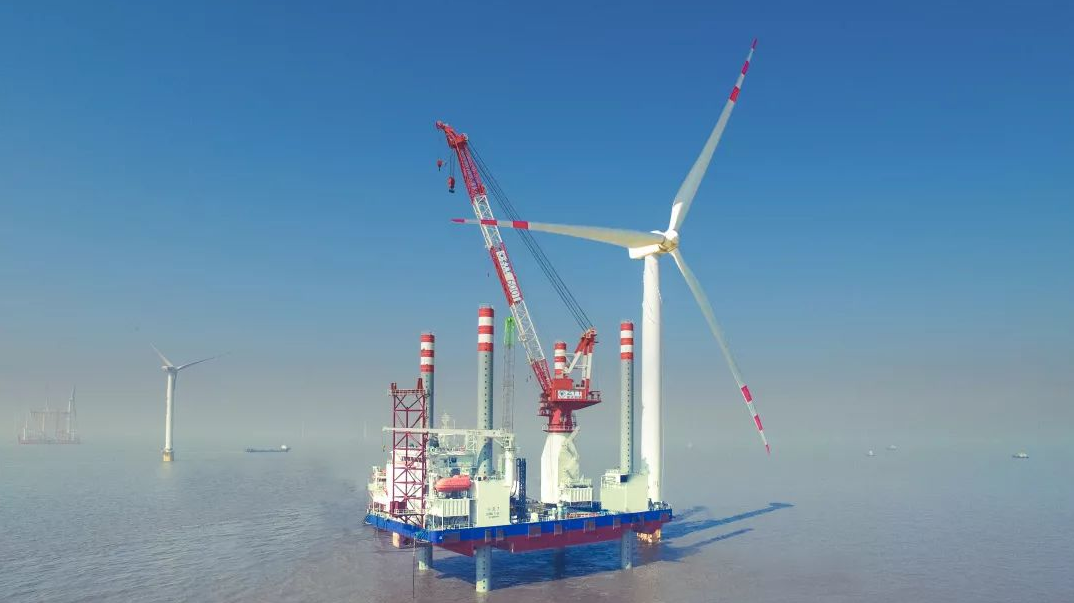 今年,我国海上风电发展迅猛,大批成规模的海上风电场都在加紧施工建设,目前我国规模最大、国产化程度最高的华能如东海上风电场即将在六月底建成投产,这也将是“十四五”时期我国首批投产的大规模海上风电项目,现在项目已经进入到最后的建设冲刺阶段,正在安装最后的十台风机。