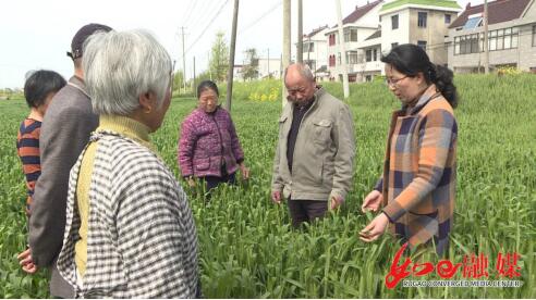 “一旦看见小麦穗子星星点点开始扬花,就说明是小麦赤霉病防治的最佳时机……”在合兴村的恒孚稻米农地股份合作社,记者看到白蒲镇农技人员钱李晶正在给村民讲解小麦病虫害的防治要点。67岁的顾建华拿着纸笔,边听边记。“如果她不来讲,我们就不懂这个情况,也掌握不到技术要点,有时候防治也不在火候上,她来讲了以后,我们就能掌握施药时间、药剂用量。”