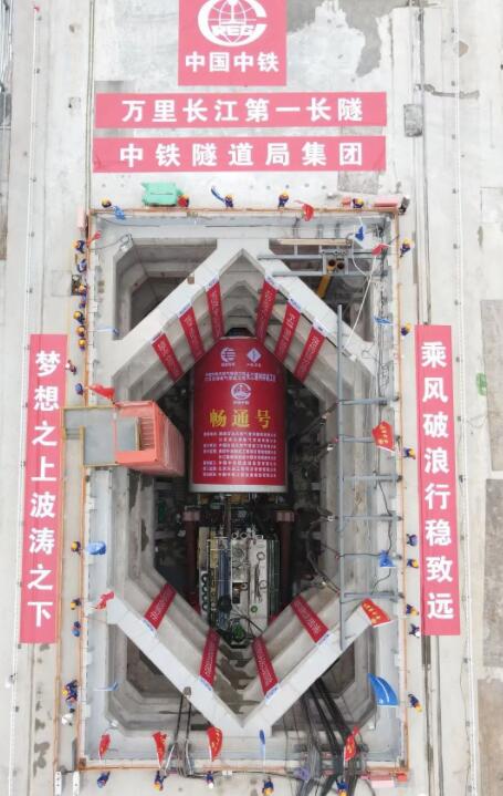 据介绍,为穿江隧道“量身定制”的“畅通号”盾构机,直径7.95米,是我国自主研制的世界最小直径常压刀盘盾构机,包含1台主机和11节拖车,共计146米,今后按照每月450米的速度掘进。“畅通号”自海门北岸始发,以隧道形式穿越长江,在常熟市南岸接收,独头掘进长达10.226千米,将创下全球单台盾构机独头掘进里程最长记录。隧道内径6.8米,外径7.6米,隧道内将埋设3根1422毫米直径管道,是世界输气管道直径最大项目之一。