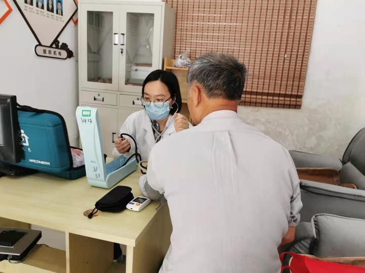 5月19日下午,南通市崇川区狼山镇街道社区卫生服务中心的家庭医生张凤琴如往常一样,来到城山家园1号楼孙连英家。“好像廋点了,精神不错。降压药在正常吃吧?晚上能平躺着睡吗?吃饭还好吗……”一进门,张凤琴就像走亲戚一样,和孙连英拉起家常,同时给老人听诊、测量血压,叮嘱老人按时按量服药。今年90岁的孙连英老人行走略有不便,作为签约医生,张凤琴已经连续10年定期上门提供服务,“没有特殊情况,每个星期三张医生都会上门。只要看到她我心里就踏实了。”