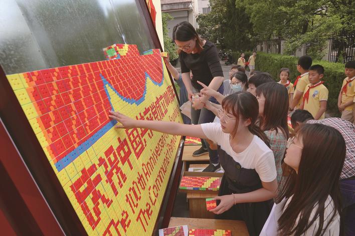 昨日,由南通师范第三附属小学组织的“建党100周年,永远跟党走”魔方拼图活动在东校区举行,80名学生在老师的指导、帮助下完成了“庆祝中国共产党成立100周年”大型拼图。孩子们用自己的方式,表达对党对祖国的爱。 记者 许丛军摄