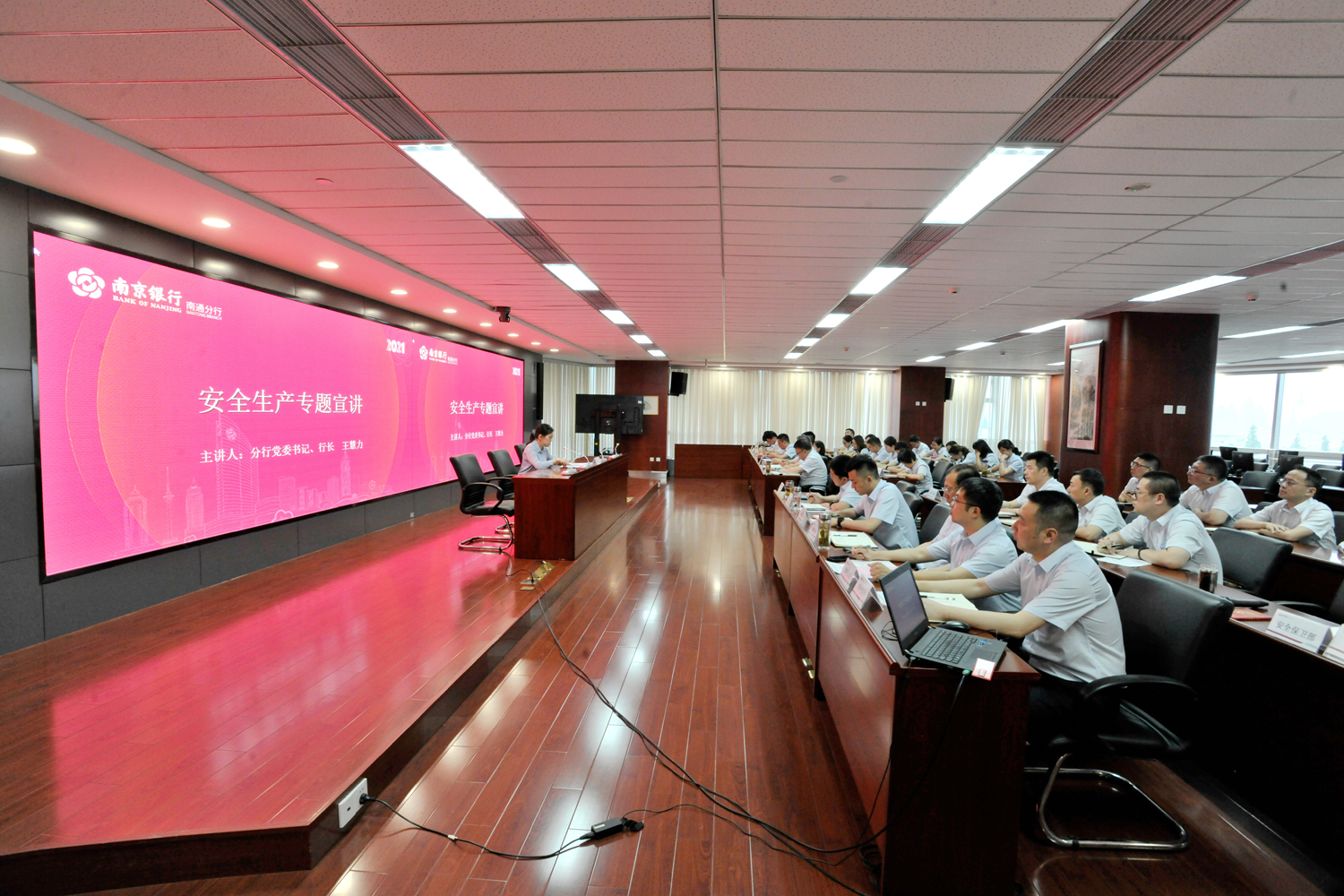 6月3日,南京银行南通分行召开半年度安全保卫工作会议,贯彻落实习近平总书记关于安全生产工作的重要指示批示精神,启动部署“安全生产月”活动,在建党100周年重要时期,全力以赴确保整体运营和金融服务的持续、安全、稳定、高效。南京银行南通分行党委书记、行长王慧力出席会议并作安全生产专题宣讲。