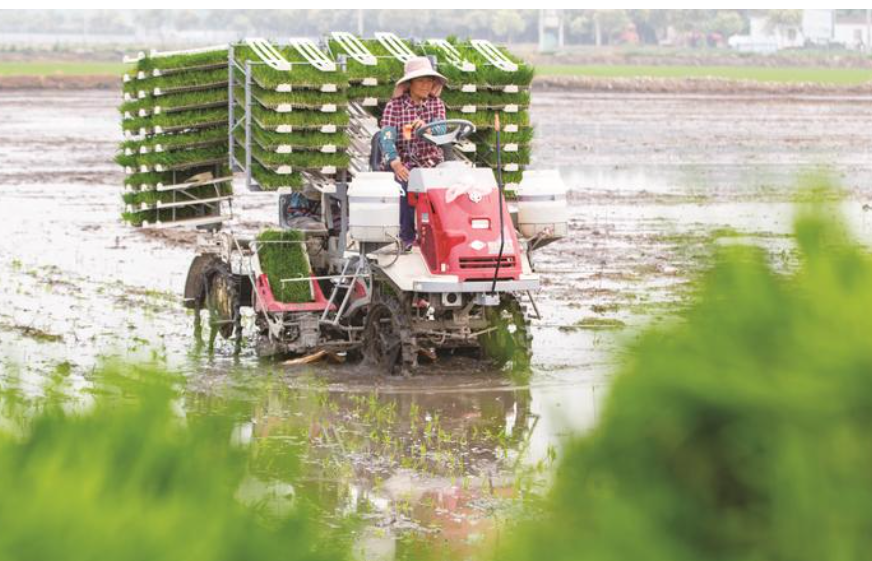 昨天,海安市雅周现代农业园的农民在操作机械插秧。连日来,我市各地农民抢抓农时,纷纷下田忙着插秧,为秋粮丰收打好基础,田间地头一派繁忙景象。 CFP供图