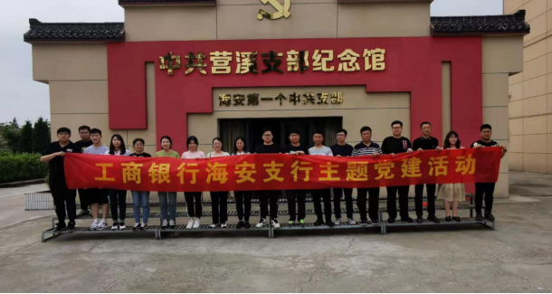 为更好的推动党史学习教育的开展,用好海安丰富的党史资源,工商银行南通海安支行组织年轻党员干部来到海安第一党支部——中共营溪党支部纪念馆开展党史学习教育现场教学活动。