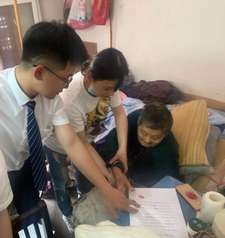 大堂经理示意客户不必焦虑,表明网点可提供上门服务。大堂经理立即向网点负责人汇报此情况,网点负责人了解后,告诉该年轻女子我行特事特办的流程,询问其奶奶身体情况、家庭情况,提醒客户做好奶奶子女及家庭成员的沟通工作,协调好家庭成员时间,并初步约定上门核保时间。
