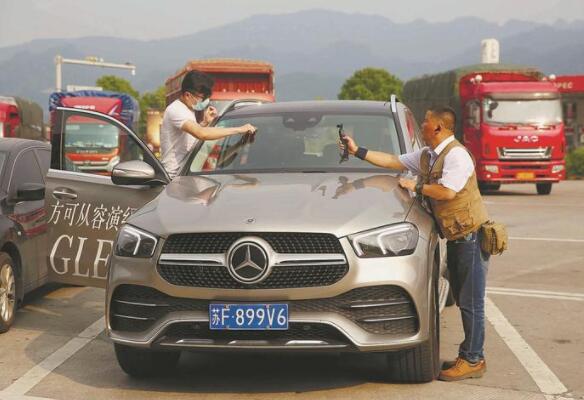 6月25日,本报记者江建华拍摄黄国逑检测车辆场景。