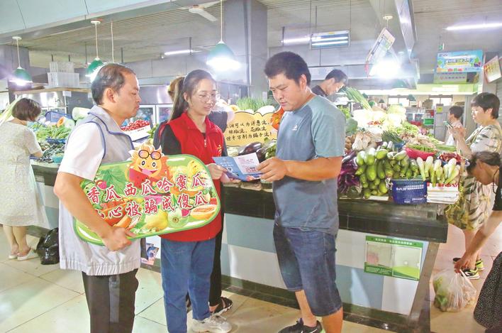 16日上午,钟秀街道百花村社区党委组织网格员、党员志愿者深入百花菜市场开展反诈宣传,通过宣传引导、摊位前的特色宣传标语,持续扩大防诈宣传的影响力。 王玥