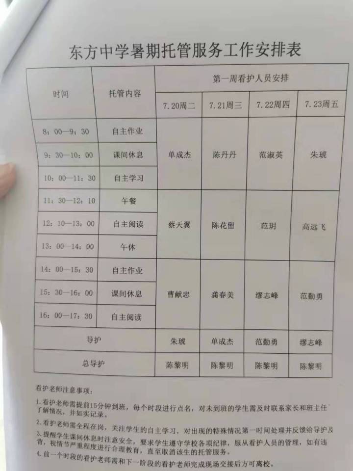 胡建说:“开展暑期托管服务,首先是一项政治任务,是一项为民办实事工程,和服务对象人数没有关系。我们的目的是让学生满意,让家长满意。这次在接到上级布置的任务后,学校以最短时间进行了工作部署。如果在接下来的时间内,还有学生希望参加暑期托管服务,只要提前申请和告知,我们都欢迎。”