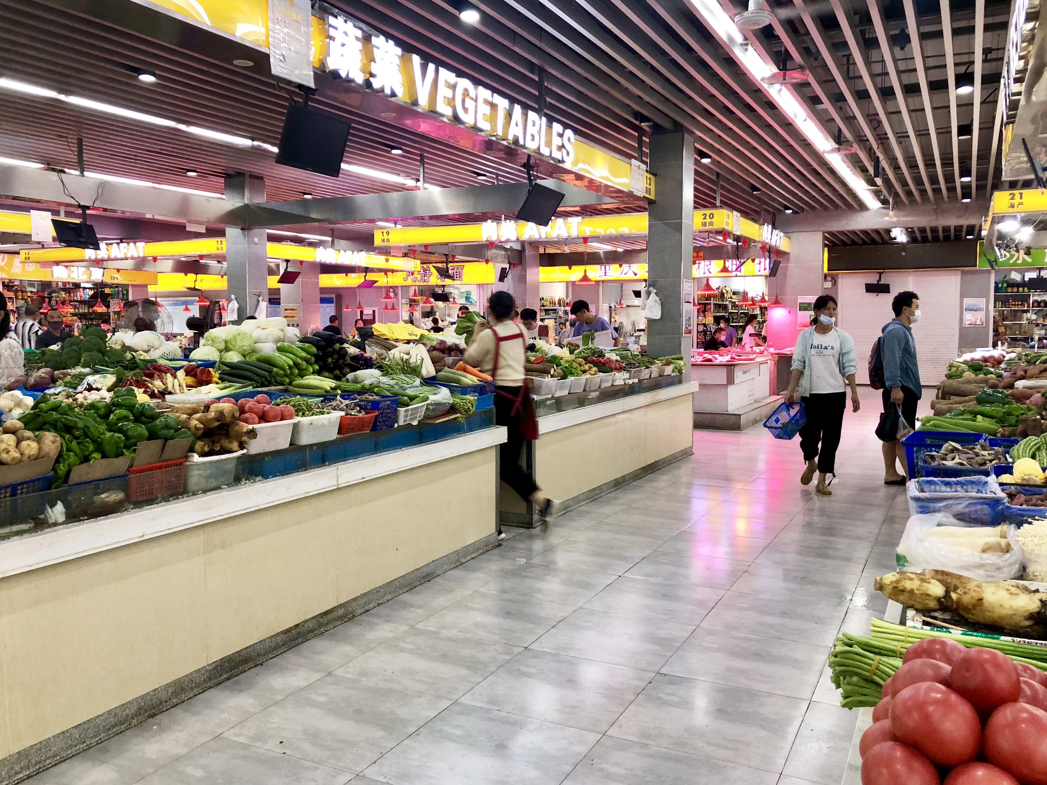 2017年投用的观音山新城农贸市场,场内设施配置齐全,蔬菜、水产、肉类、粮油等区域通过顶部的灯带明确划分,场外建有非机动车棚、40多个机动车位,还设有封闭式的垃圾集中收集点。今年,市场为车棚更换了不锈钢顶棚,对公共厕所进行了改造,增设了母婴室。