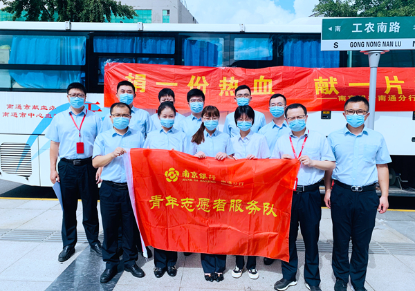 8月6日上午,南京银行南通分行分工会、团委携手青年志愿者服务队,在金融汇大楼前联合开展无偿献血公益活动。该行员工、青年志愿者们积极响应、撸袖献爱心,献血量共计17600毫升。